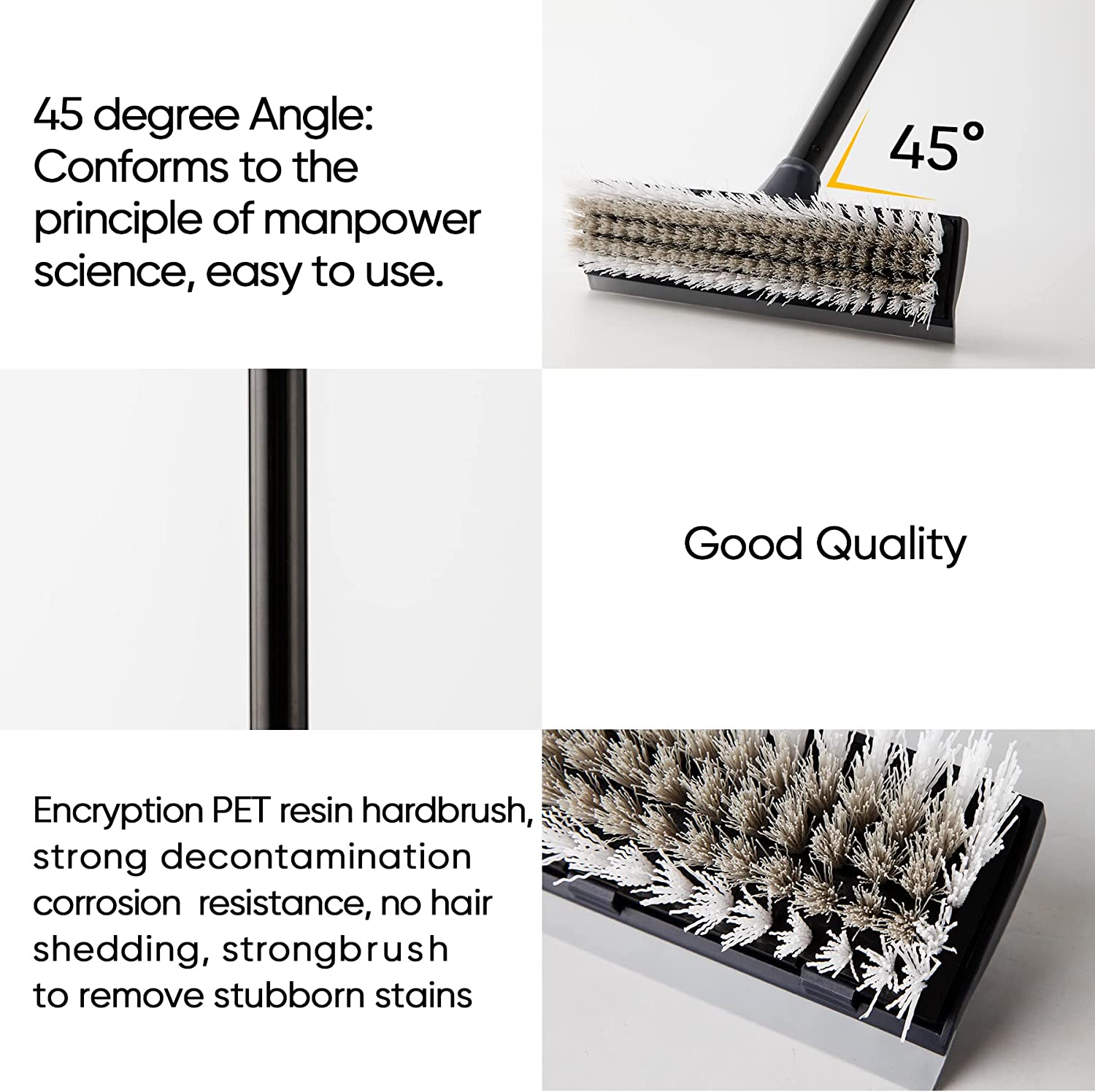 - Floor Scrub Brush 2 in 1 Scrape&brush Push Broom Ergonomic Principle: The Angle of the pole and brush part conforms to the ergonomic principle, which can be used to use the broom/brush with less effort, so that cleaning can be simple and convenient.