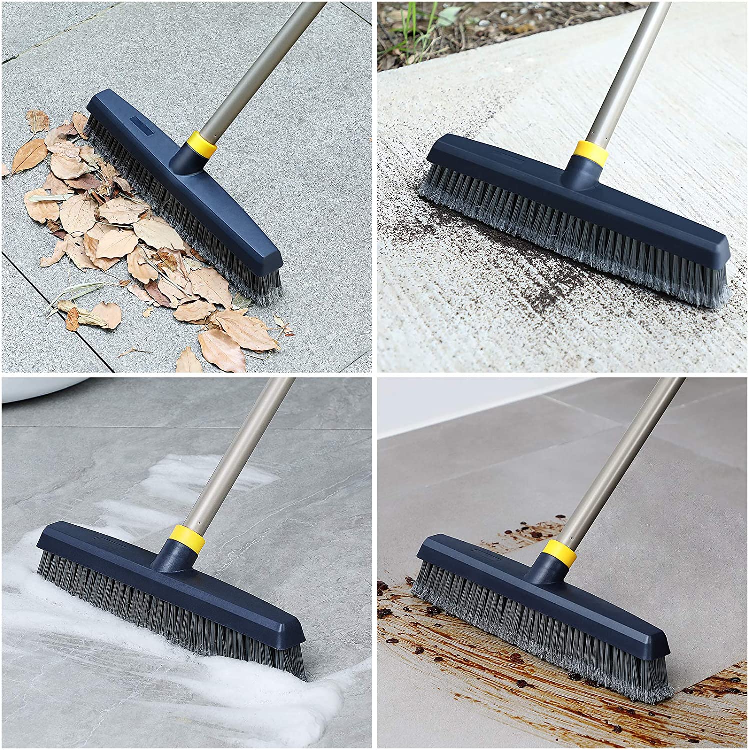 Yocada Push Broom Brush Hard Bristle Broom Head Telescopic Heavy Duty Outdoor Commercial Cleaning Bathroom Kitchen Patio Garage Deck Concrete Wood Stone Tile Flooring