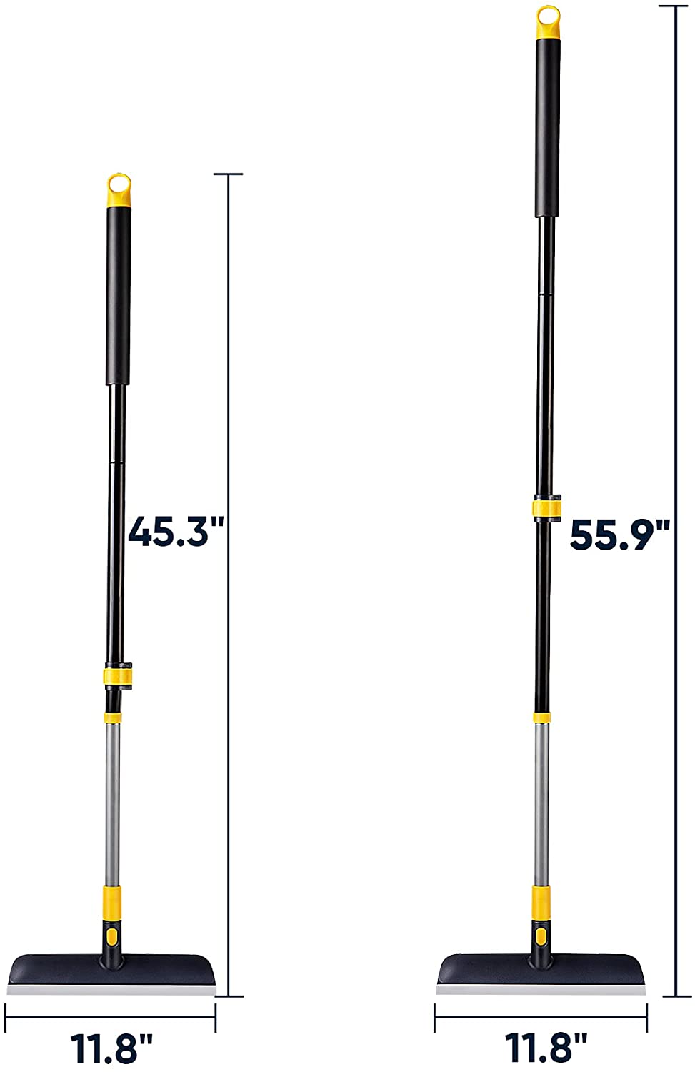- Floor Scrub Brush 2 in 1 Scrape&brush Push Broom Telescopic Pole: The iron pole length can be adjusted from 45.3 inches to 55.9 inches, you can just open the lock on the pole to adjust, so you don't need to bend your back.